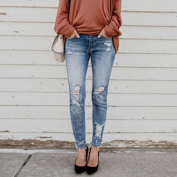 Upliftingsweater – Fashion Skinny Solid Color Ripped Jeans