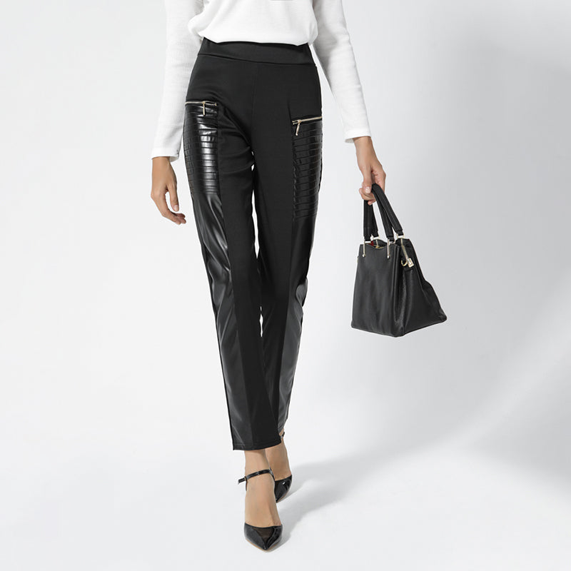 Upliftingsweater – Streetwear Faux PU Leather High Waist Black Stacked Pants