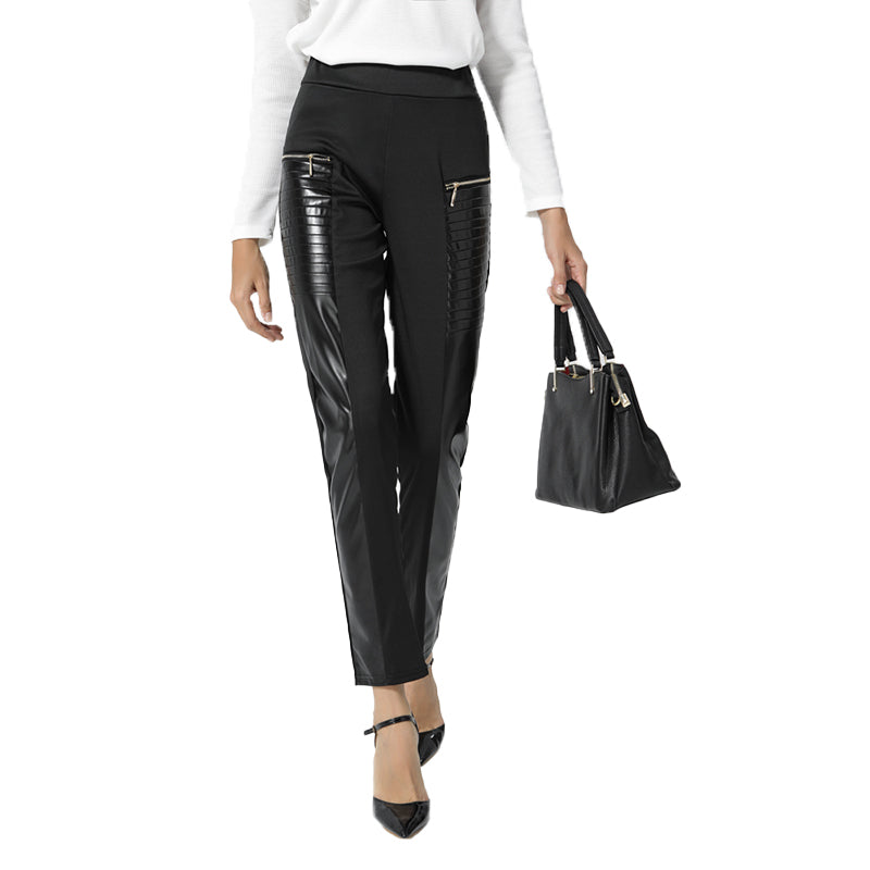 Upliftingsweater - Streetwear Faux PU Leather High Waist Black Stacked Pants quantity