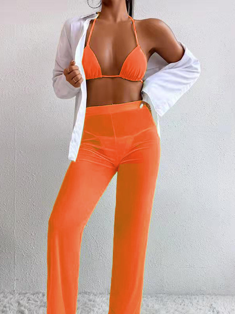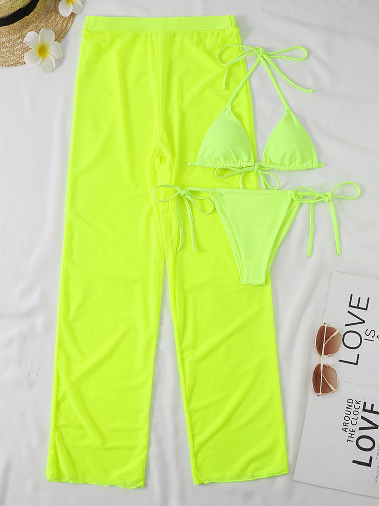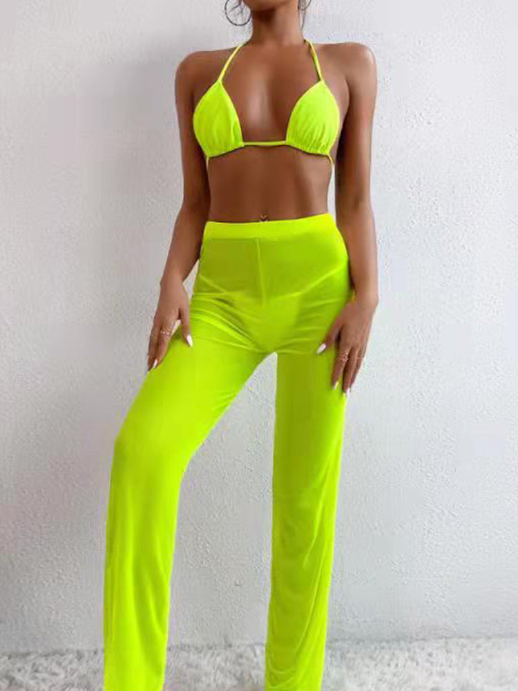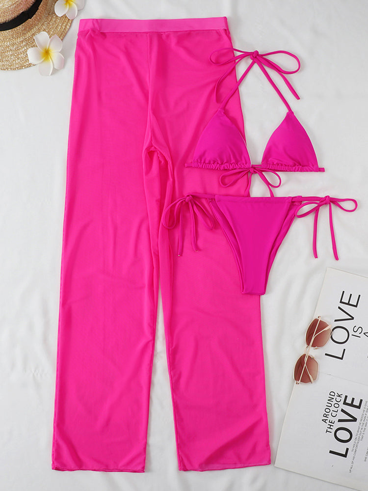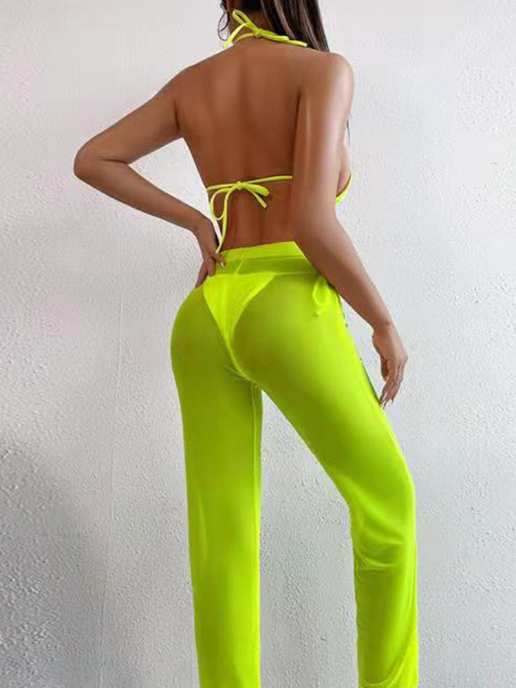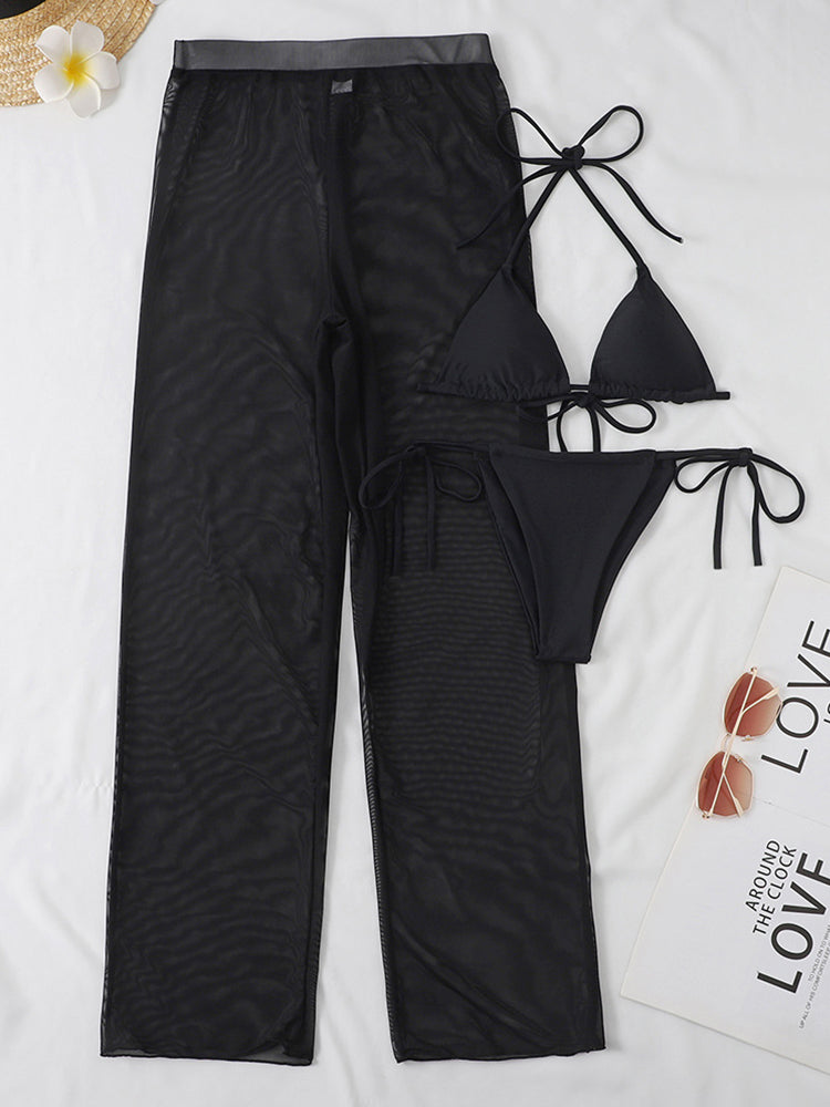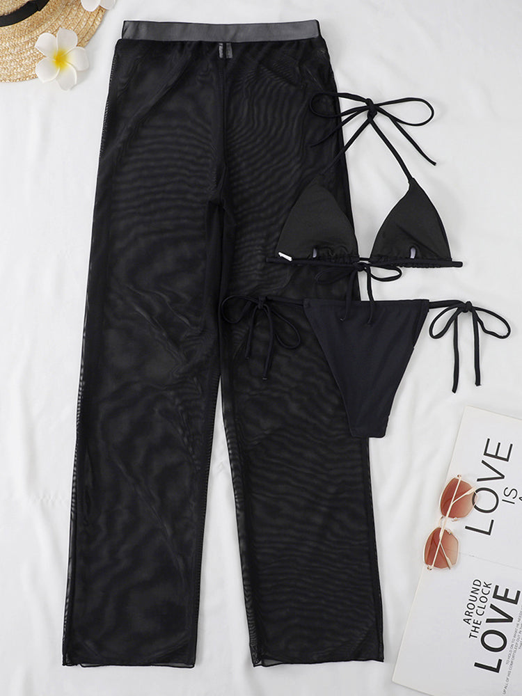 Upliftingsweater – Three Pieces Bikini Set With Sexy See-Through Mesh Pants